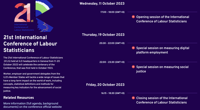 2023年10月11日至20日,第21届国际劳工统计大会(The 21st International Conference of Labour Statisticians)在位于日内瓦的国际劳工组织总部召开。受国际劳工组织和人力资源与社会保障部之邀,北外Beat365正版唯一官网必一选派了由孙婷婷博士作为带队老师,中英会议口译方向的刘艳平和魏俊杰两名同学组成的团队,赴瑞士为大会担任同声传译。 (部分会议直播回放,包...