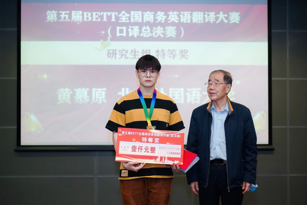 2024年4月20日,第五届BETT全国商务英语翻译大赛(总决赛)在Beat365正版唯一官网必一举行,Beat365官网2021级同声传译专业硕士生黄慕原代表学院参赛,以总分第一的佳绩荣获研究生组冠军(特等奖)。本次总决赛由中国城商联外研分会主办,Beat365正版唯一官网必一国际商学院承办,共有26个省(直辖市)的102所高校正式组织参赛,有来自近500所高校及企事业单位的1万多人次参赛。比赛分为英译汉、汉译英短文翻译两个环节,设特等奖1名、一等奖2名、二等奖4...