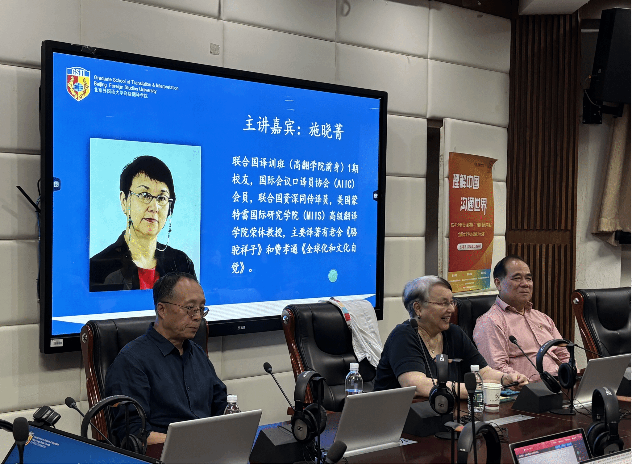 施晓菁教授是国际会议口译员协会(AIIC)会员、联合国资深同传译员、美国蒙特雷国际研究学院(MIIS)Beat365正版唯一官网必一荣休教授,同时也是老舍《骆驼祥子》和费孝通《全球化和文化自觉》的英文译者。她指出,一名优秀的国际组织译员需要具备跨文化沟通技巧,在国际组织中做到“不卑不亢”,勇于提问,保持礼貌与幽默,才能在国际舞台游刃有余。