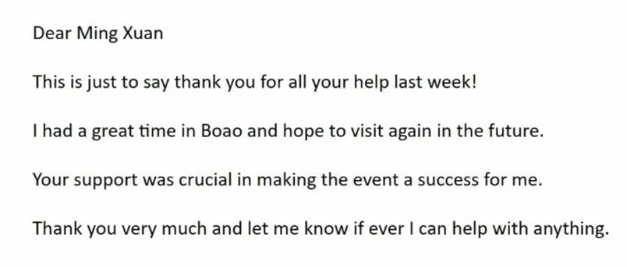 与此同时,郭明璇也积极参与研究项目及实习工作,担任学院办公室辅导员助理,参与“国家翻译能力指数建设”课题、“英汉汉英会议同声传译语料库建设项目”、“京韵华彩——京剧基础知识与表演体验”北京京剧院青年演员京剧知识讲座同声传译。2023年年初,她入选博鳌亚洲论坛秘书处实习生,参与博鳌亚洲论坛2023年年会筹备工作,因出色的语言能力,她主要负责境外企业联络和年会现场外宾接待,并在工作结束后收到外宾的感谢邮件。