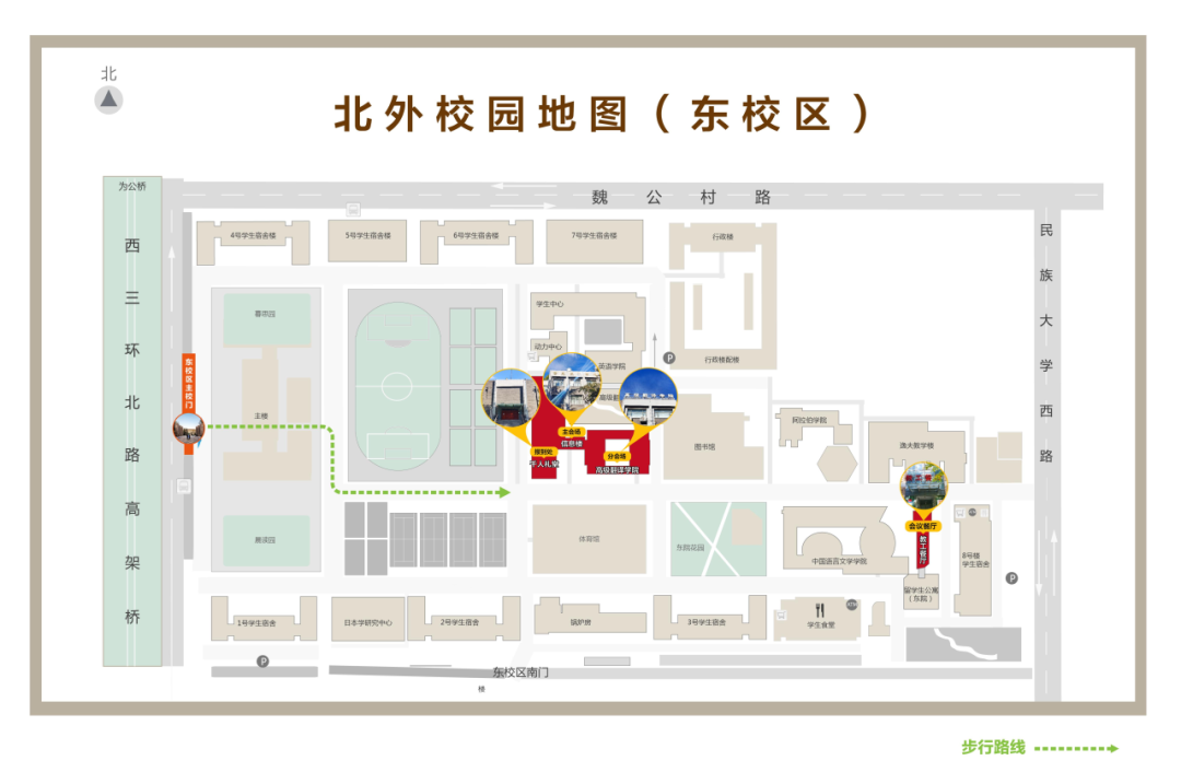 ● 魏公村路西口站:距离西门约300米,步行约5分钟,公交线路包括563路、603路