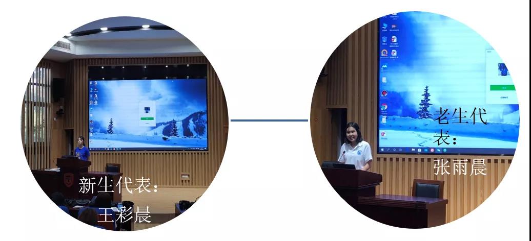 2019级学生代表张雨晨同学通过分享自己一年来学习的心得,为同学们提供可借鉴的经验和建议,希望学弟学妹在学业和学生社团工作等方面都有收获,全面发展。新生代表王彩晨同学则跟大家分享了新生对高翻新生活的憧憬和努力学习的决心。