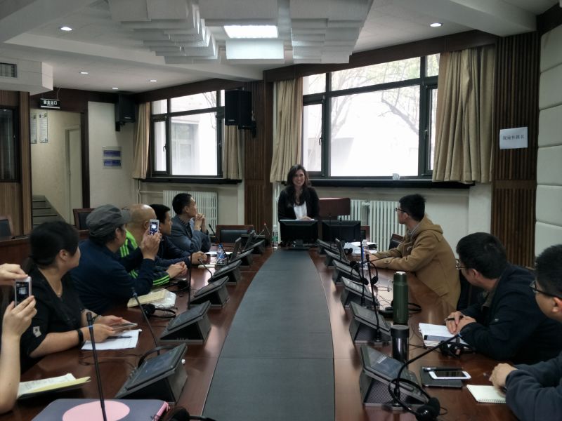 Tania博士是研究职业沟通与跨文化交际的专家。她的讲座聚焦于不同职业场景下的人际沟通方式。她首先从自己所做的工程师和营销团队会议沟通方式差异的研究说起,进而引入了Lave和Wenger提出的“实践的共同体”(community of practice)概念,探讨了不同类型实践共同体在互动方式、语言和身份认同方面的特征与差异。继而,她提出了职业沟通研究对口译研究可能存在的参考价值,包括对沟通环境的理解、对权力关系的认知、对价值观和规则的了解以及语用方面的工具等。演讲后,Tania和与会听众进行了深入交流。