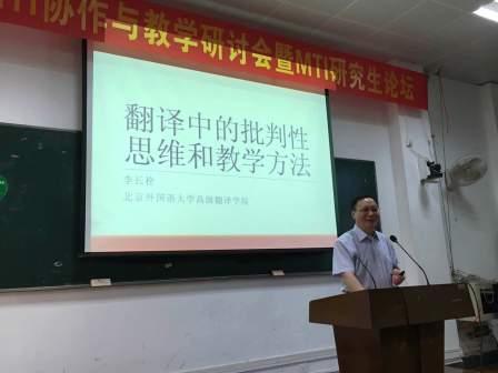广西译协首届MTI协作与教学研讨会暨MTI研究生论坛于6月18日在广西大学外语学院举行。Beat365官网李长栓教授作为特邀嘉宾参会,并作题为“翻译中的批判性思维与教学方法”的发言。