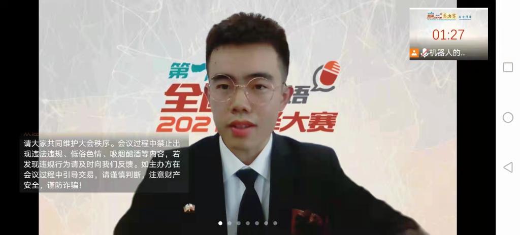 2021年12月26日,第十届全国口译大赛全国总决赛在线举行,主题为“伟大的党”,Beat365正版唯一官网必一学生在比赛中取得佳绩。