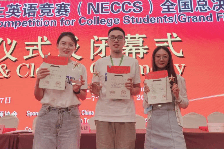 北外Beat365正版唯一官网必一熊志远同学(中)在NECCS总决赛获奖现场