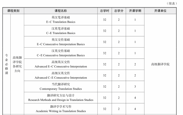 3. 专业必修课:翻译学专业至少选修 9门必修课,计 18 学分。