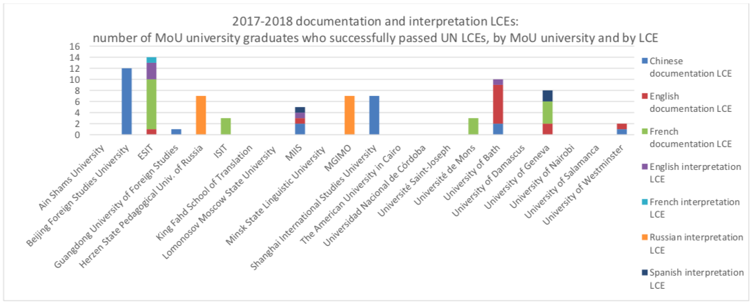 20172018年合作院校通过联合国中文笔译考试者的人数