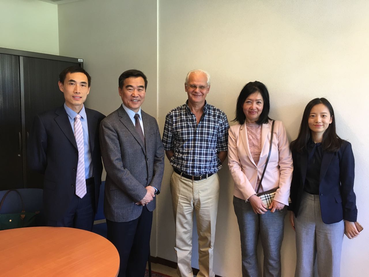 5月29日上午闫国华一行与联合国日内瓦办事处口译处处长李正仁等北外校友进行交流。闫国华向校友们介绍了北外最近的新发展以及近期牵头成立全球外国语大学联盟等重要举措。他提出建立日内瓦联合国系统校友会的设想,利用北外校友的庞大网络充分建立母校与校友们之间的联系。同时表示希望每年九月校庆期间校友们能够抽时间回院系回母校。校友们对代表团一行的关心表示感谢,纷纷表示非常愿意有机会回母校,为北外,为高翻学院的发展尽一份力。同时校友们对建设日内瓦联合国系统校友会的设想做出了积极回应。