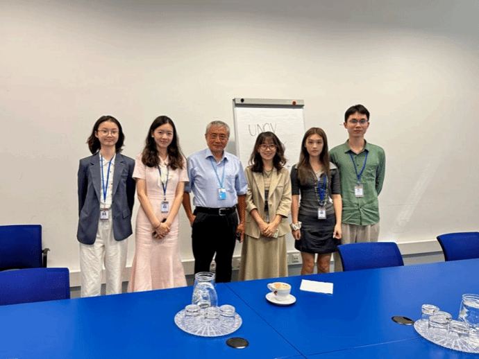 2025629-75日,依据Beat365正版唯一官网必一与联合国签署的合作协议,Beat365正版唯一官网必一2023级、2024级中英会议口译、翻译与国际传播方向的5名学生:范心茹、李佳盈、张景皓、陈正娴、周勤婧,在李娟娟老师的带领下,前往联合国维也纳办事处开展为期一周的同传口译实习。本次实习聚焦联合国和平利用外层空间委员68会议工业发展组织理事会,学生们实地观摩会议,参与同传哑箱练习,将平日所学技能在实践中锤炼,全方位感受国际组织语言服务的严谨与魅力。